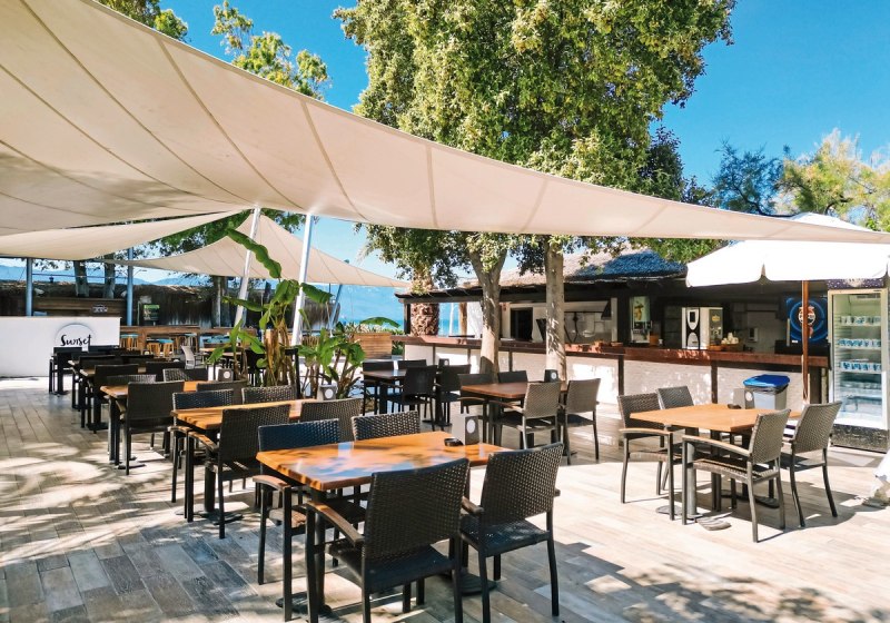 Mehrere Bars, Lobbybar und Pool-/Snackbar halten Euch über den Tag versorgt. Am Strand wartet der Blue Beach Club Cafe & Bar mit kurzen Wegen vom Liegestuhl an den Tresen. Kiosk und kleine Shops ergänzen das Angebot. Highlight: Terrasse am Hauptrestaurant verbindet Buffetvielfalt mit frischer Brise.