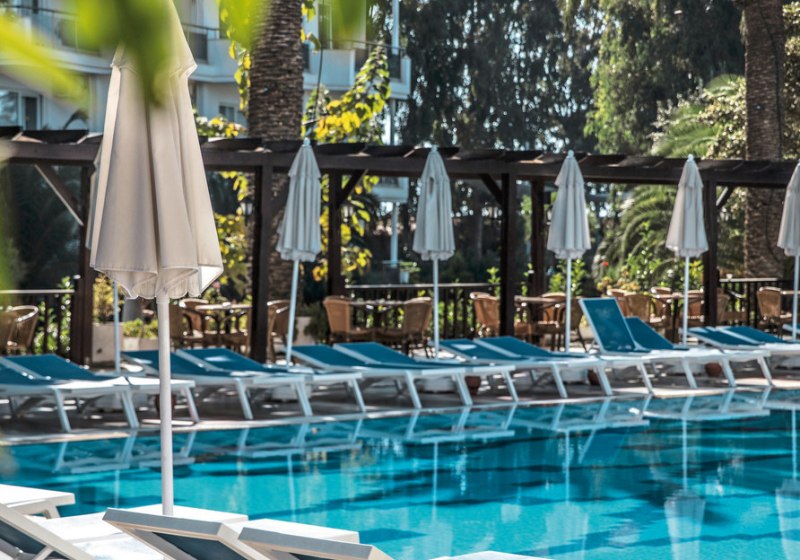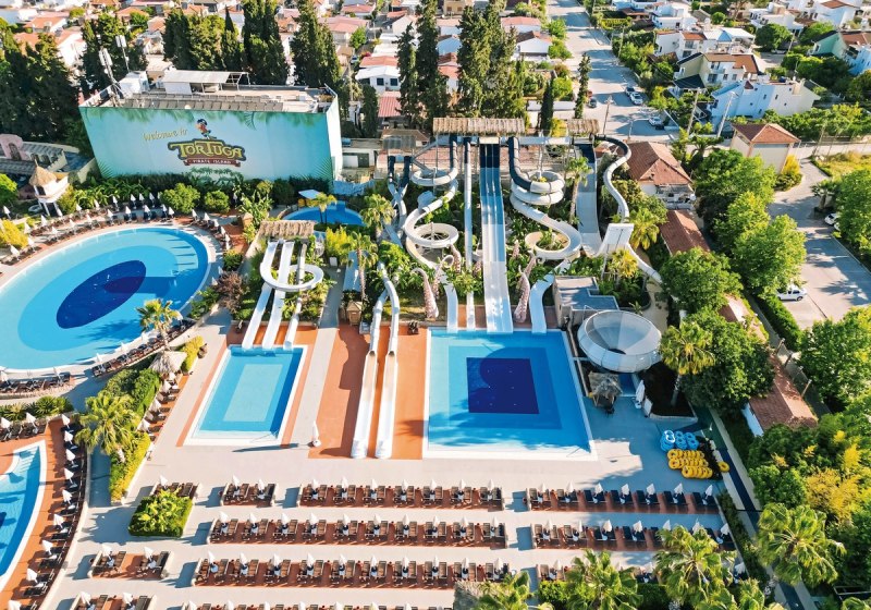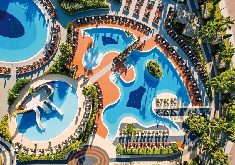 • Liegestühle • Außenpool • Sonnenschirme • Poolbar • Sonnenterrasse • Badetücher • Wasserrutsche • Wasserpark • Pool