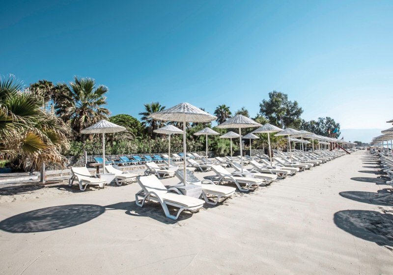 Am hoteleigenen Strand nutzt Ihr Liegen und Sonnenschirme, Badetücher erhaltet Ihr gegen Kaution. Das Amphitheater bündelt abends die Aufmerksamkeit, tagsüber lockt der Wasserpark mit Rutschen. Spielplatz, Sitzgruppen und schattige Wege schaffen eine angenehme Aufenthaltsqualität. Highlight: Wasserpark und Strand liegen nah beieinander.