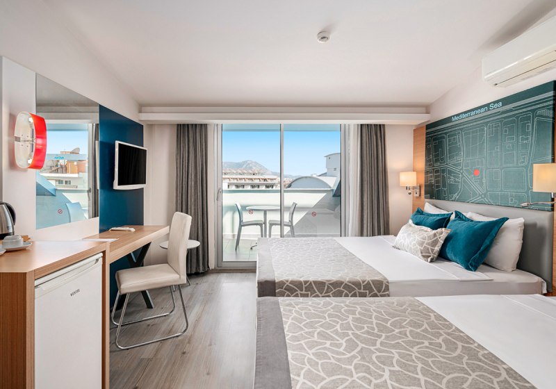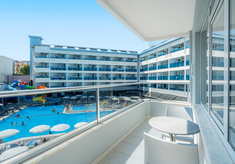 - Wahl des Blicks: Pool- oder Straßenblick je nach Zimmerkategorie ausgewiesen.