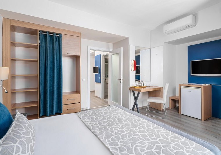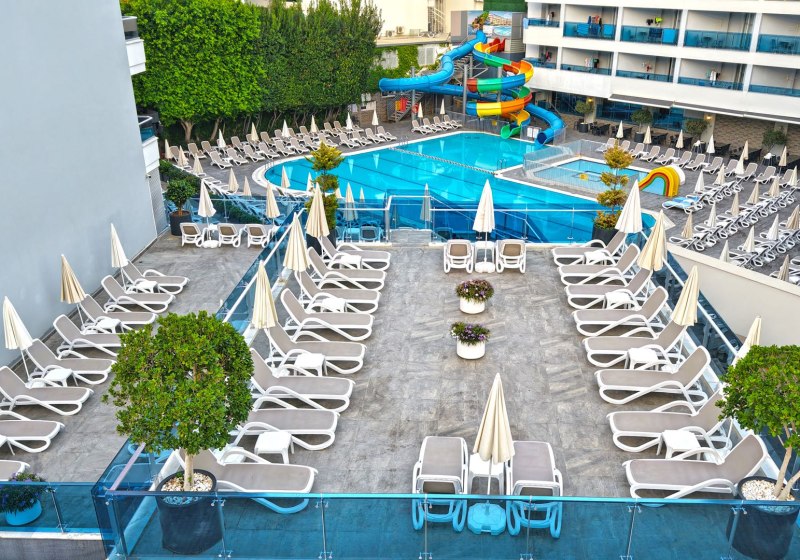Der Außenpool mit Kinderbecken und Wasserrutschen setzt den Ton für aktive Stunden, während Liegen und Sonnenschirme am Pool und am nahen Sand-/Kiesstrand bereitstehen. All Inclusive vereinfacht den Tag, von Frühstück bis Snacks und Getränken. Dank 24-Stunden-Rezeption, Transferservice, Mietwagenverleih und öffentlichem Verkehr in unmittelbarer Nähe plant Ihr Eure Wege flexibel. Für ruhige Minuten warten Hamam und Sauna; für gesellige Abende die Strandbar, saisonal geöffnet mit klaren Servicezeiten.