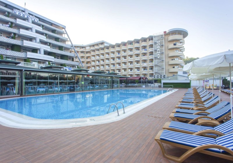 Beach Club Doganay verbindet direkte Strandlage, zwei Außenpools mit Rutsche und ein vielseitiges Sport- und Animationsprogramm. Mit WLAN im gesamten Hotel, All-Inclusive Plus und kurzen Wegen zwischen Strand, Bars und Restaurants bleibt Euer Tag strukturiert und unkompliziert in den Ferien.