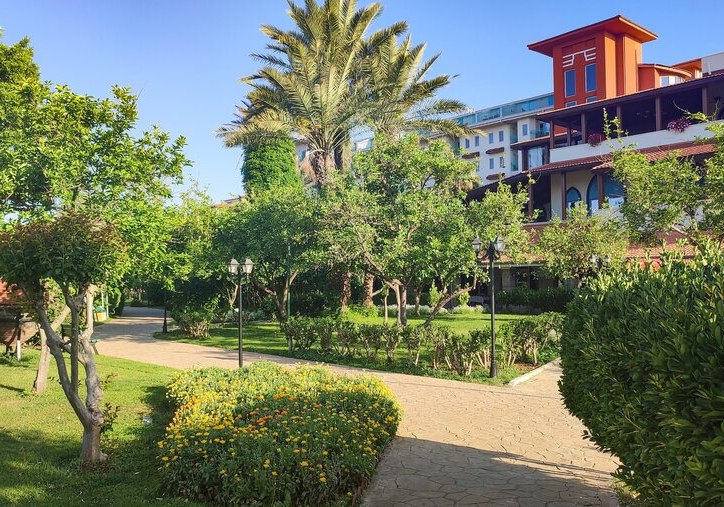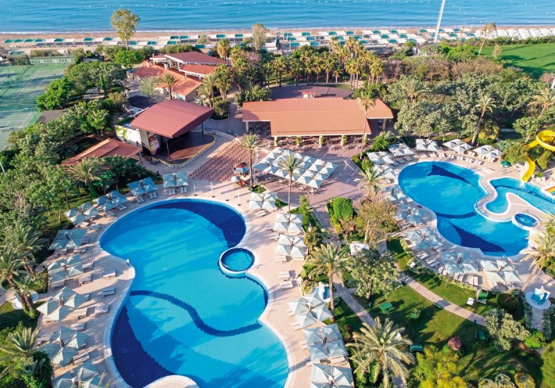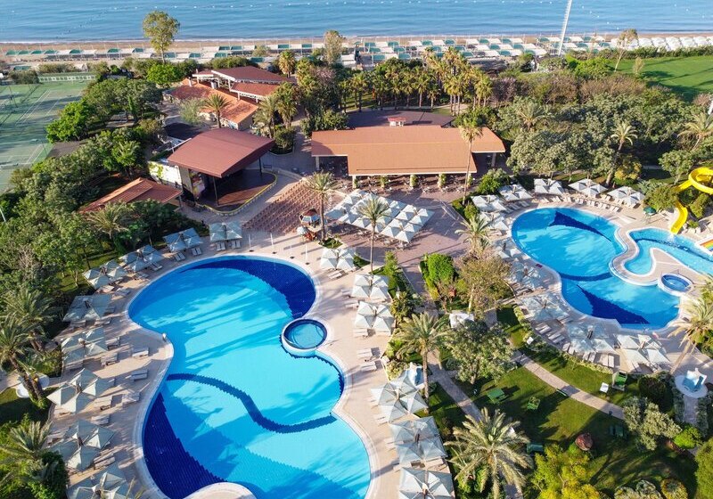 Im Belconti Resort Hotel erwartet Euch ein weitläufiges Resort in Belek mit direktem Bezug zum Meer und klarem Fokus auf entspannte Strandtage. Die Atmosphäre wirkt geordnet und lebendig zugleich: ruhige Gartenwege, großzügige Pools und kurze Wege zum privaten Sand-/Kiesstrand schaffen Struktur für erholsame Tage und aktive Stunden.