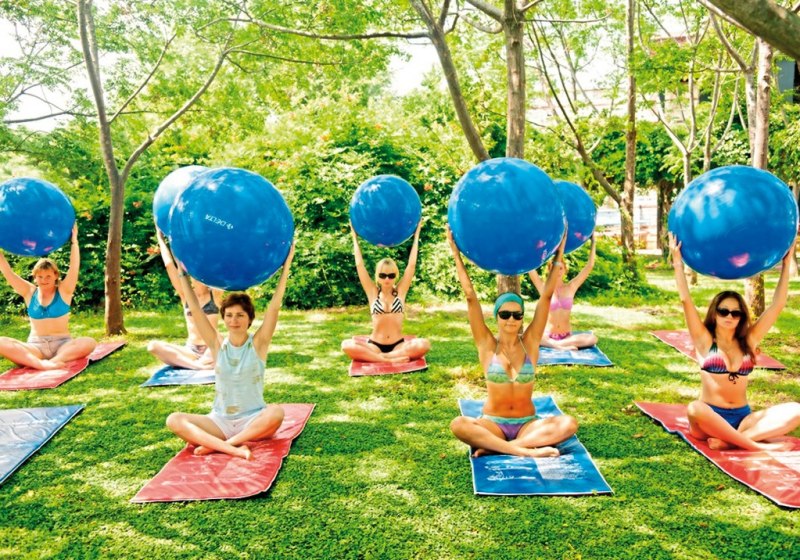 Für aktive Tage steht ein breites Programm bereit: Fitness-Studio, Aerobic, Aqua-Fitness und Gymnastik strukturieren das Training. Draußen warten Tennisplätze, Basketball, Beachvolleyball, Badminton, Darts, Tischtennis, Minigolf und Nordic Walking. Der Wasserpark mit Rutschen bringt Tempo in den Nachmittag.