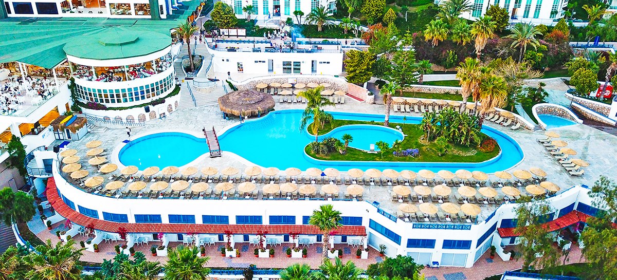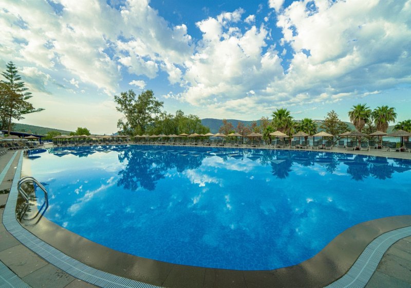 Bodrum Holiday Resort & Spa verbindet direkte Strandlage in Içmeler mit weitläufiger Resort-Struktur und lebendiger Ferienatmosphäre. Zwischen Poollandschaft, Aquapool mit vier Wasserrutschen und eigenem Badesteg findet Ihr abwechslungsreiche Tage. Familien schätzen den Miniclub und die Kinderbecken, Aktive die Vielfalt an Sportarten, Ruhesuchende den Spa-Bereich und das Hallenbad.