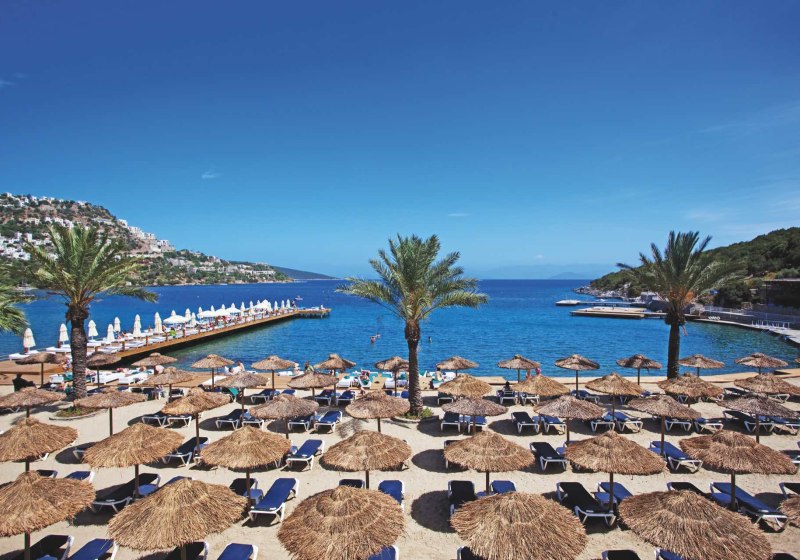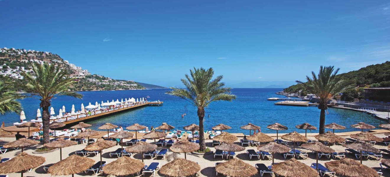 Die Anlage breitet sich zwischen Wasserlinie, Gartenbereichen und Sonnenterrassen aus, begleitet vom Klang der Bucht. Die Beachbar übernimmt tagsüber kurze Verschnaufpausen, am Abend wird der Meerblick zur Bühne für Musik und Gespräche. Wer mobil sein möchte, nutzt den Mietwagenverleih vor Ort und den hoteleigenen Parkplatz. Die Lage eignet sich für entspannte Badezeiten, kleine Ausflüge in die Nachbarschaft und Abende mit Blick auf das Wasser. Highlight: Direkte Strandlage in der Türkbükü-Bucht mit schneller Anbindung ins Zentrum.