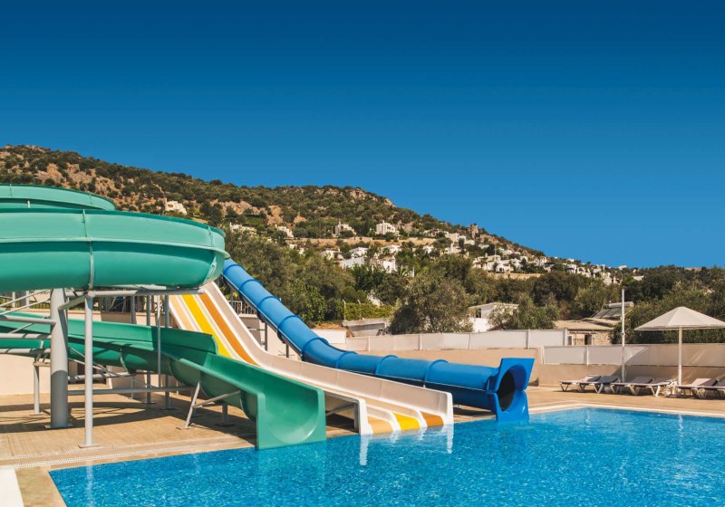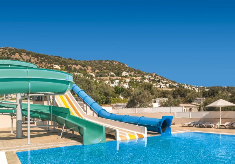 - Rutschenspaß: Drei Wasserrutschen setzen sportliche Akzente am Pool.