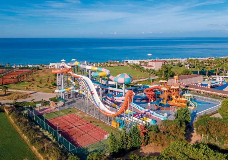 • Liegestühle • Außenpool • Sonnenschirme • Poolbar • Sonnenterrasse • Wasserrutsche • Pool