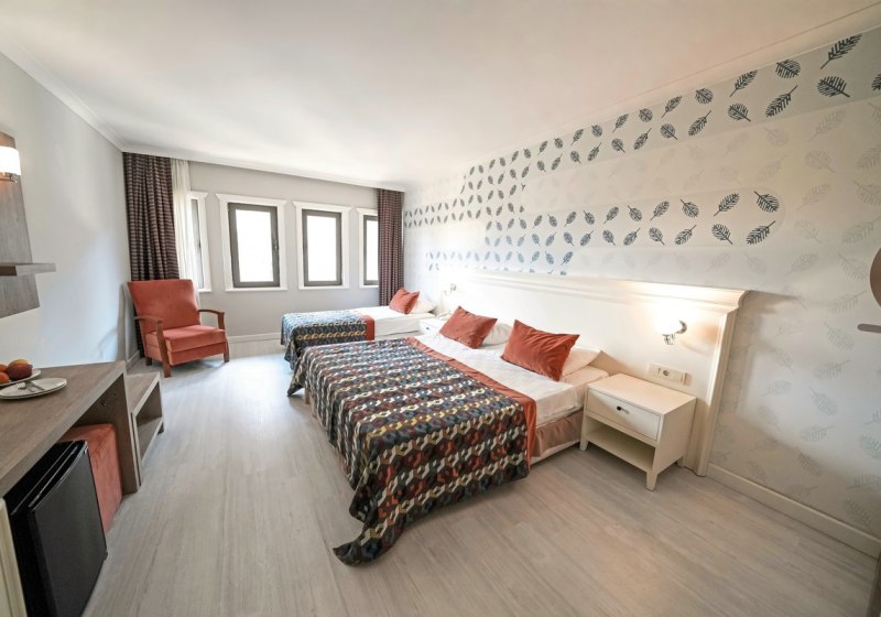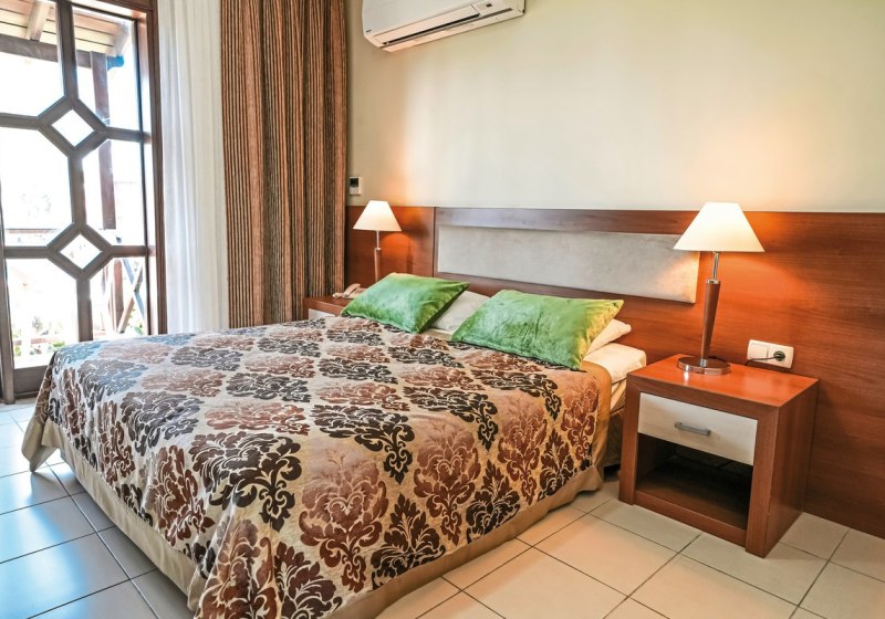 • Klimaanlage • Balkon (je nach Zimmerkategorie) • Haartrockner • Sitzecke (je nach Zimmerkategorie) • Minibar • Telefon • Safe • Meerblick (je nach Zimmerkategorie) • Fernseher (Sat-TV) • WiFi • Terrasse