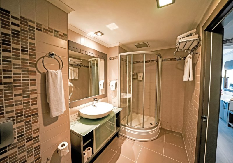 Die 2023 renovierten Bereiche wirken gepflegt und funktional, ohne Showeffekte. Ihr bewegt Euch durch klare Wege, vom Hauptgebäude mit vier Etagen zu Pools, Bars und Strandbar. WLAN begleitet Euch in der gesamten Anlage, Klimaanlage sorgt überall für angenehme Temperaturen. Highlight: Strandnähe mit Promenade, Aquapark und 25‑Meter‑Pool bilden ein starkes Trio.