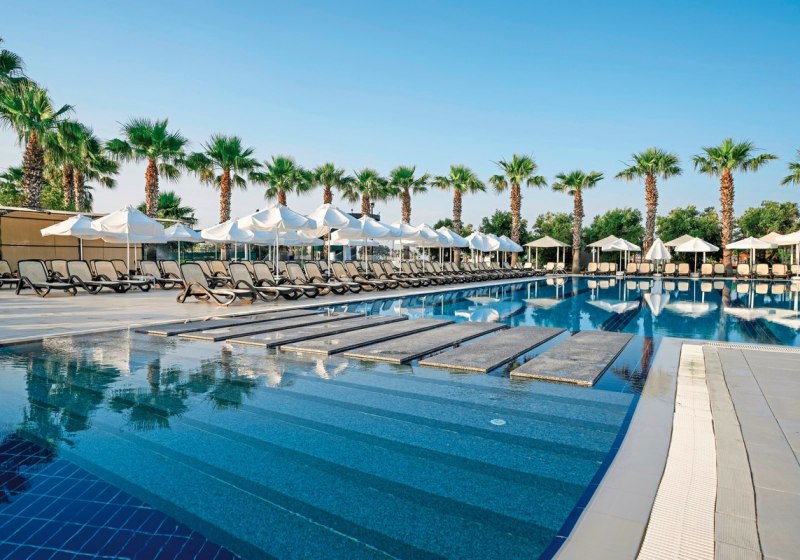 Im Calimera Serra Palace erwartet Euch eine weitläufige Resortwelt direkt am Strand, getrennt nur durch die Promenade. Zwischen Aquapark, Relaxbereichen und üppiger Gartenanlage findet Ihr vielfältige Rückzugsorte und lebendige Treffpunkte. Familien fühlen sich mit Miniclub und Teenslounge gut aufgehoben, Aktivfans schätzen den 25‑Meter‑Sportpool und die strukturierte Tagesanimation.