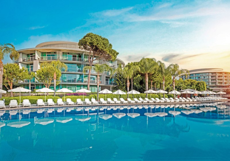 Calista Luxury Resort verbindet direkte Strandlage, Pinienkulisse und eine klare Struktur aus Pools, Sport und abendlicher Bühne. Familien profitieren von Miniclub, Kinderbetreuung und Kinder-Spa, Paare und Freunde von ruhigen Zonen, Bars und dem großen Spa.