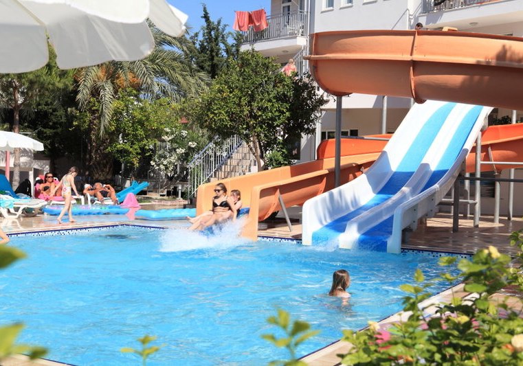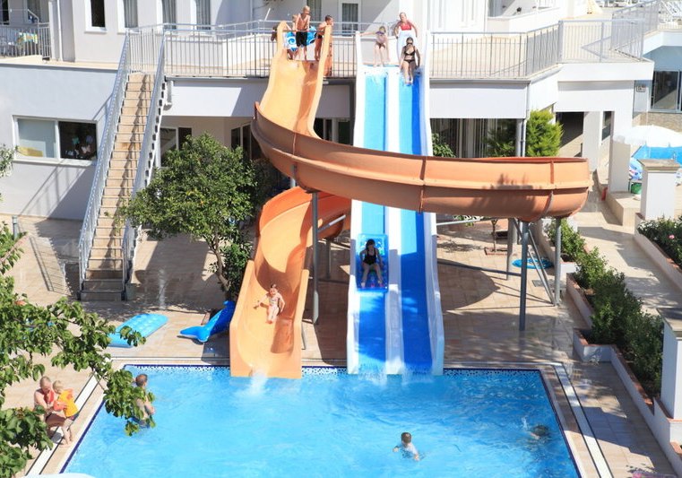 • Liegestühle • Außenpool • Sonnenschirme • Poolbar • Sonnenterrasse • Wasserrutsche • Wasserpark • Pool