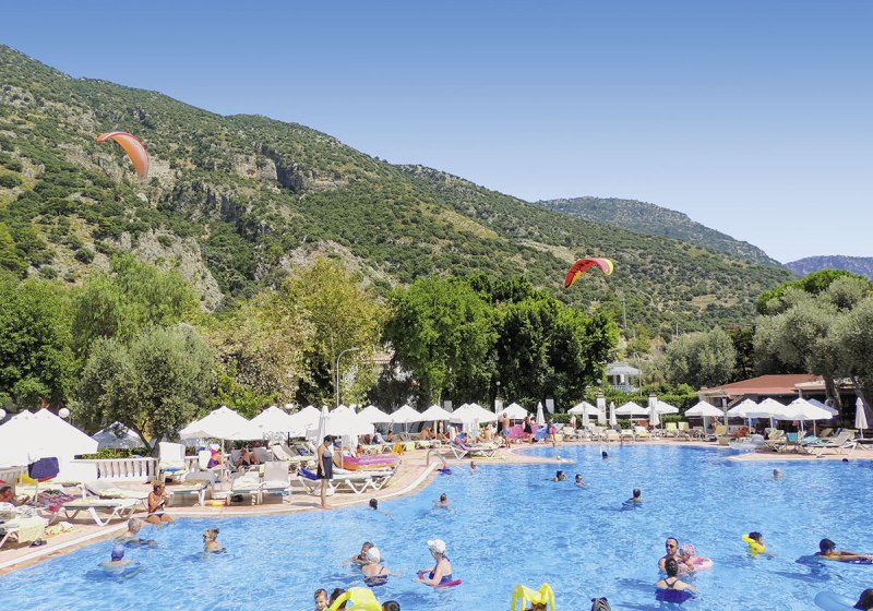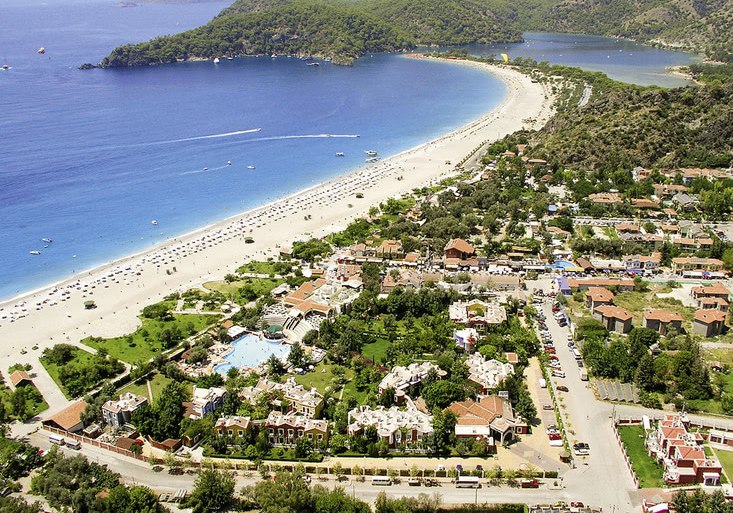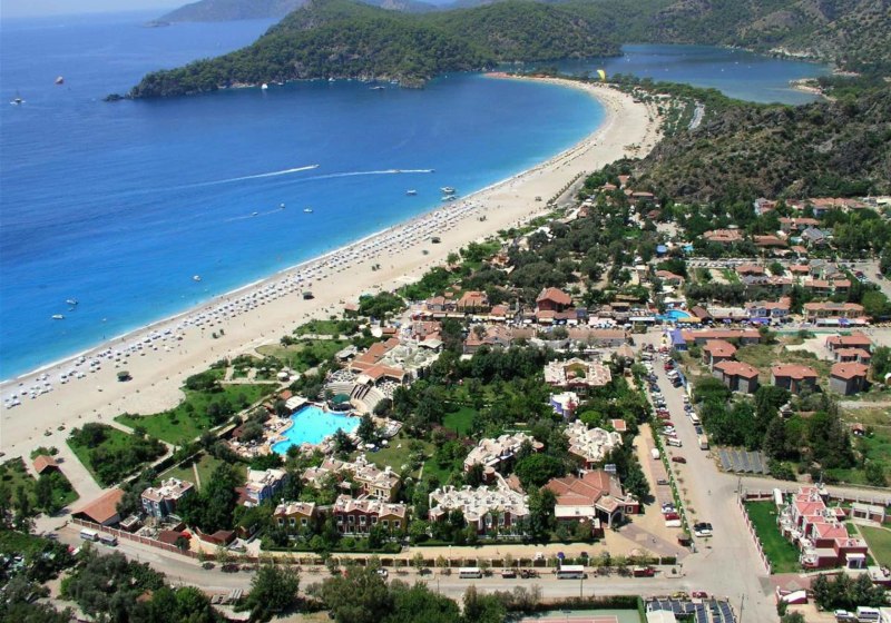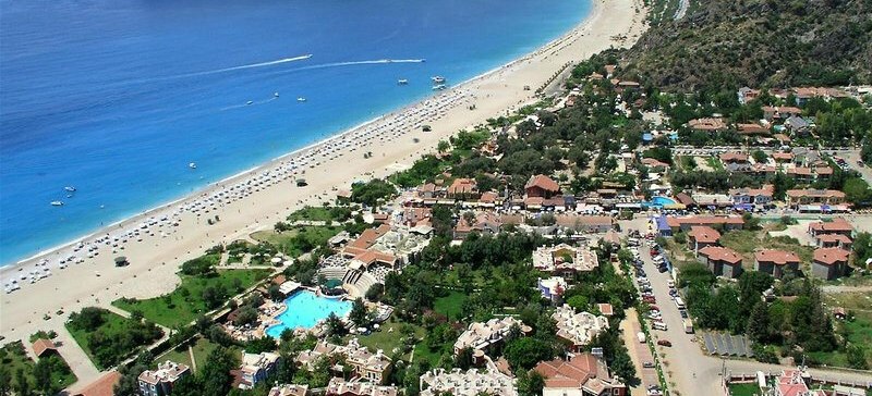 Ihr residiert in Ölüdeniz bei Fethiye, nur wenige Schritte vom Meer entfernt. Der Strand liegt direkt vor der Anlage; zusätzlich erreicht Ihr einen hoteleigenen Abschnitt in etwa 700 Metern per Shuttle. Das Ortszentrum und touristische Angebote liegen in kurzer Distanz, Restaurants und Bars befinden sich ebenfalls nah.