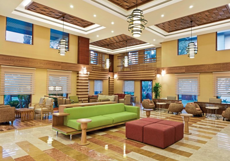 An der Strandpromenade wechselt Ihr zwischen Beachbar und Pool-Snackbar, schlendert an Geschäften vorbei und nutzt WLAN in der gesamten Anlage – außer im Hauptrestaurant. Das Publikum wirkt aktiv, fröhlich und strandorientiert; wer Abwechslung sucht, findet Animation und am Abend Shows im Amphitheater des Schwesterhotels Club Grand Aqua. Highlight: Direkte Strandlage mit langem, flach abfallendem Sandstrand und eigenem Abschnitt.