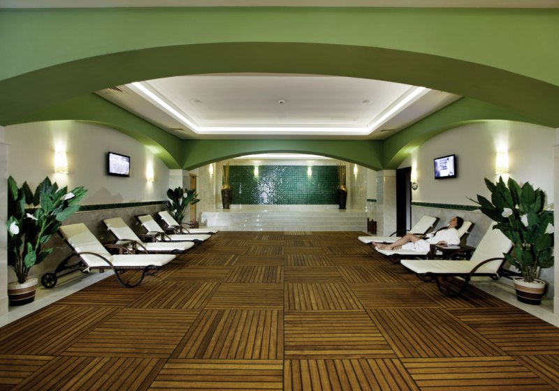 Das Wellnesscenter erstreckt sich über rund 1.500 m² und bietet Raum für entspannte Stunden abseits des Pooltrubels. Ihr nutzt Sauna und Türkisches Bad für wohltuende Wärme, bevor Ihr im Ruherhythmus wieder an den Strand zurückkehrt. Anwendungen und Massagen sind zubuchbar und runden den Aufenthalt fokussiert ab.