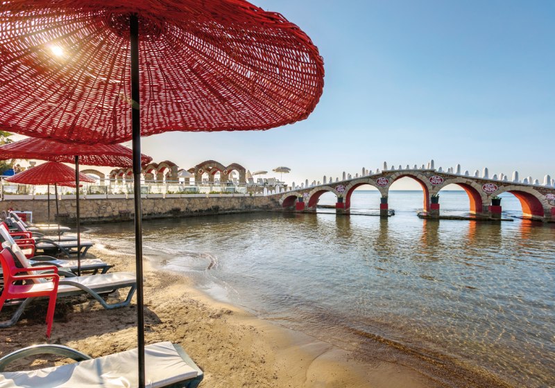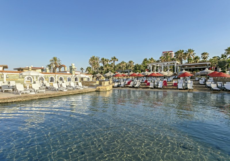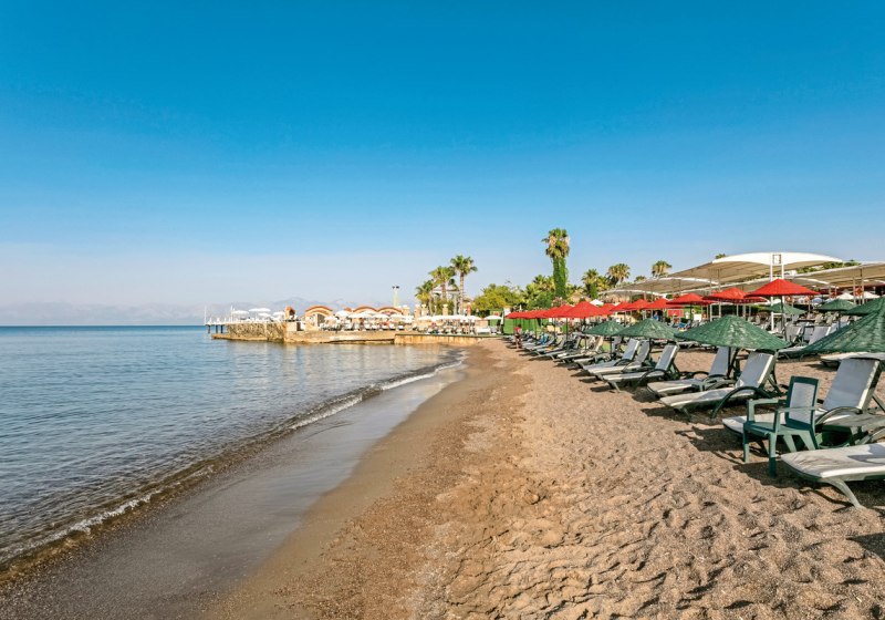 Die Anlage umfasst Haupt-, Club- und Nebengebäude mit Aufzügen, Geschäften, Minimarkt und Friseur. An Pool und Strand warten Liegen, Sonnenschirme und Badetücher; eine künstliche Sandbucht und Badeplattformen sorgen für zusätzlichen Badezugang. Dank regelmäßigem Busverkehr erreicht Ihr Antalya unkompliziert. Abends füllt stimmige Unterhaltung die Bühnen, ohne den Rückzug zu stören.
