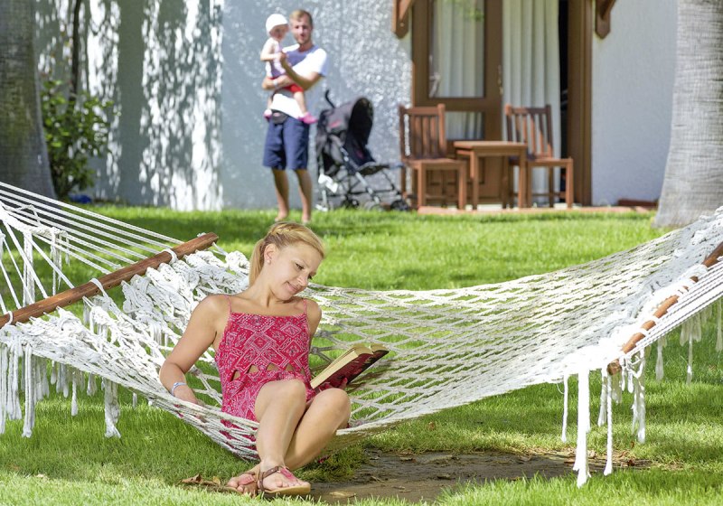 Die 416 Zimmer verteilen sich auf acht zweistöckige Bungalows und drei dreistöckige Blockhäuser – das vermittelt Dorfcharakter mit kurzen Wegen. Je nach Typ erwarten Euch Dusche/WC, Föhn, LCD-Sat-TV, Telefon, Safe, Minibar, Wasserkocher mit Kaffee-/Tee-Setup, Klimaanlage sowie Balkon oder Terrasse. Highlight: Swim-up-Zimmer mit direktem Poolzugang.