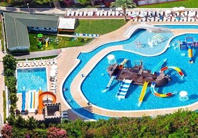Club Kastalia empfängt Euch direkt am Sand-/Kiesstrand von Konakli als weitläufiges Feriendorf mit 416 Zimmern in Bungalows und Blockhäusern. Die Atmosphäre ist lebendig und zugleich entspannt: Drei Süßwasserpools, Aquapark mit Piratenschiff und breite Sportflächen prägen das Bild. Highlight: Familienfreundliches Strandresort mit großem Sportfokus und Aquapark.
