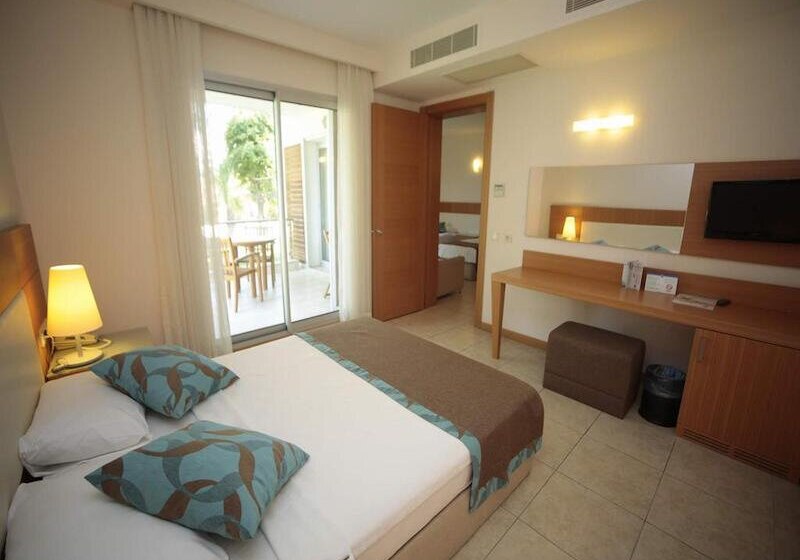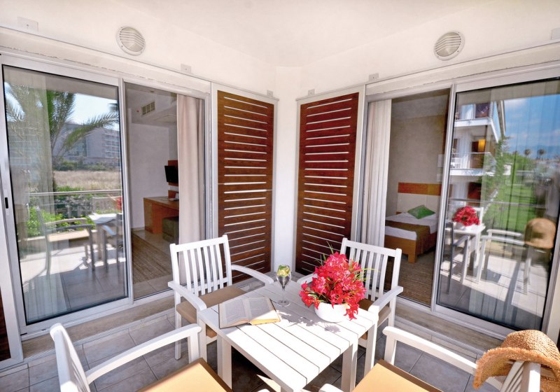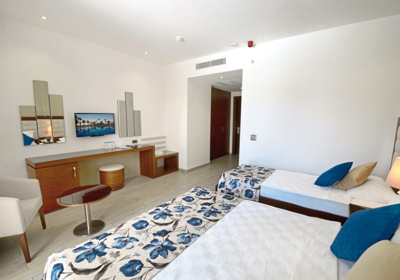 Für Familien eignen sich besonders Zimmer mit Verbindungstür. Babybetten sind auf Anfrage erhältlich. Das Setup bleibt funktional und alltagspraktisch, sodass Ihr zwischen Strand, Pool und Abendprogramm unkompliziert zurück ins Zimmer wechselt – mit Platz, um kurz durchzuatmen und dann weiterzuziehen.