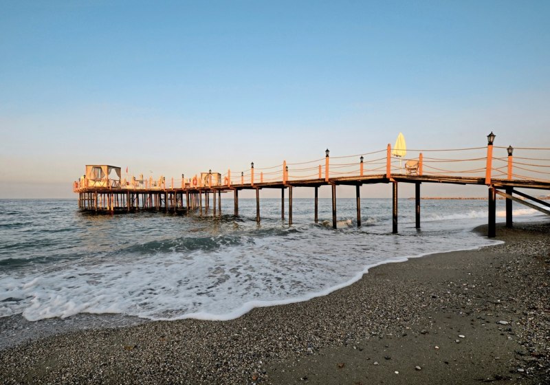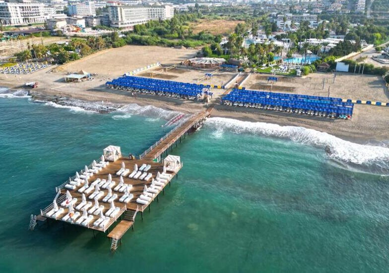 Ihr wohnt direkt am Meer an Konaklis Sand-/Kiesstrand, nur wenige Schritte trennen Euch vom Wasser. Ein Badesteg erleichtert den Einstieg. Bis Alanya sind es etwa 12 km. Öffentliche Minibusse und Taxis halten in Hotelnähe, der ÖPNV liegt circa 350 m entfernt. Highlight: Direkte Strandlage mit schneller Anbindung in Richtung Alanya.