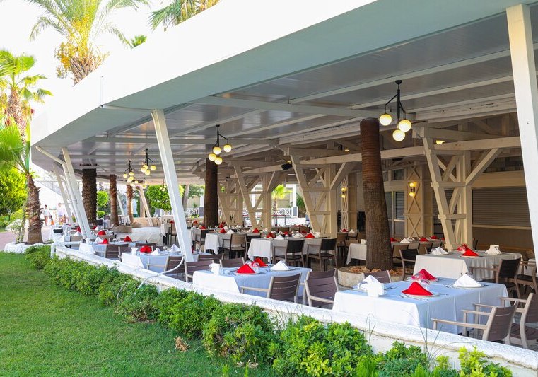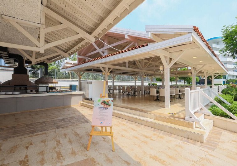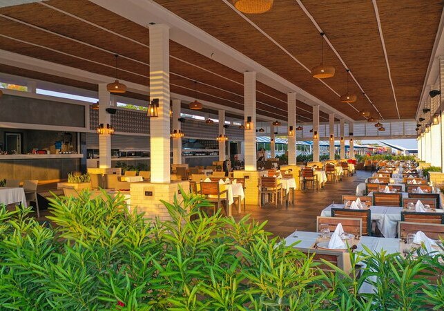 Im Hauptrestaurant mit Terrasse trefft Ihr auf reichhaltige Buffets mit Kinderbereich, ergänzt durch mehrere À-la-carte-Optionen. Zwischenmahlzeiten gelingen unkompliziert: Pool-Snackbar, Beach-Snackbar, Café und Patisserie liefern vom schnellen Happen bis zur süßen Pause verlässliche Auswahl.