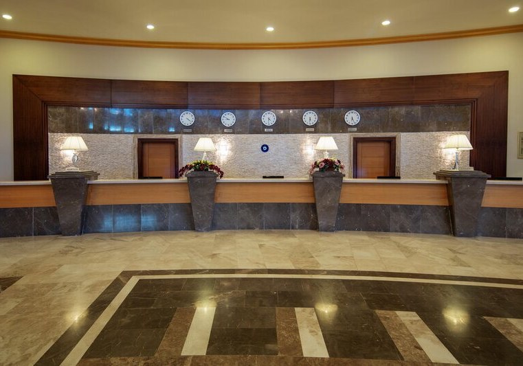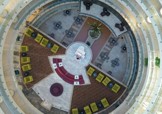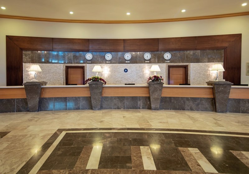 Die öffentlichen Bereiche sind großzügig angelegt: Empfangshalle mit Rezeption und Sitzbereichen, Shops, Friseur und Spielraum schaffen kurze Wege. WLAN steht in den öffentlichen Bereichen bereit. Zehn Aufzüge verbinden die sechs Etagen und halten die Wege im Alltag angenehm.