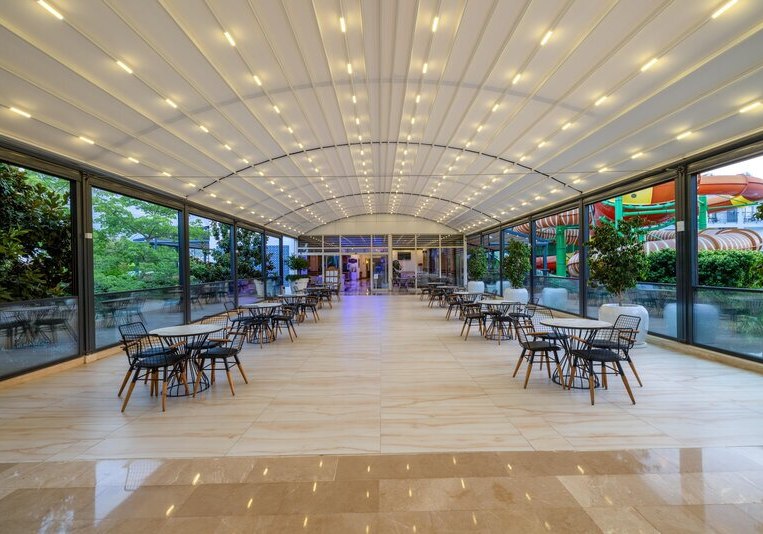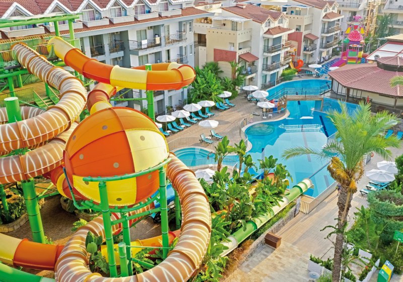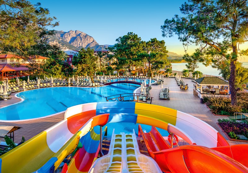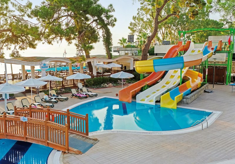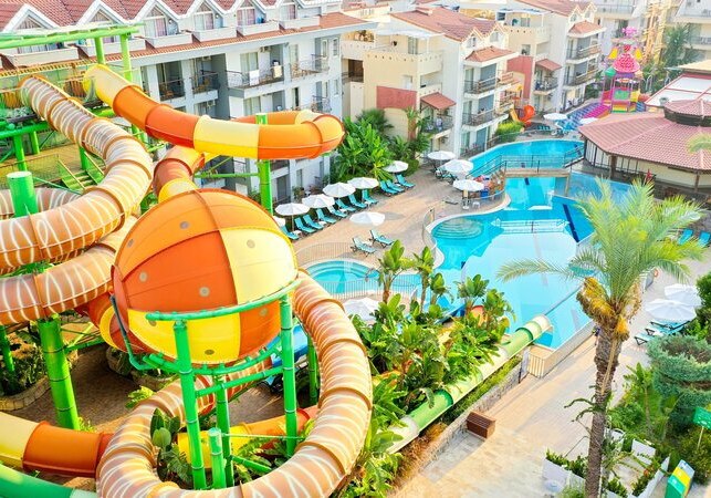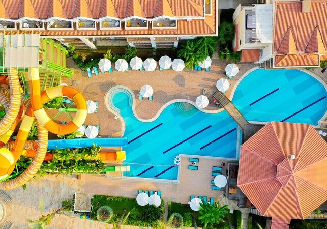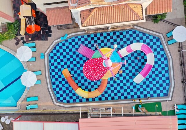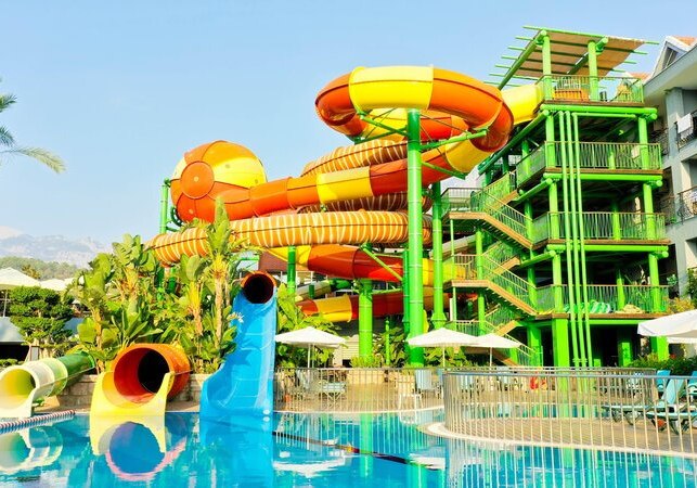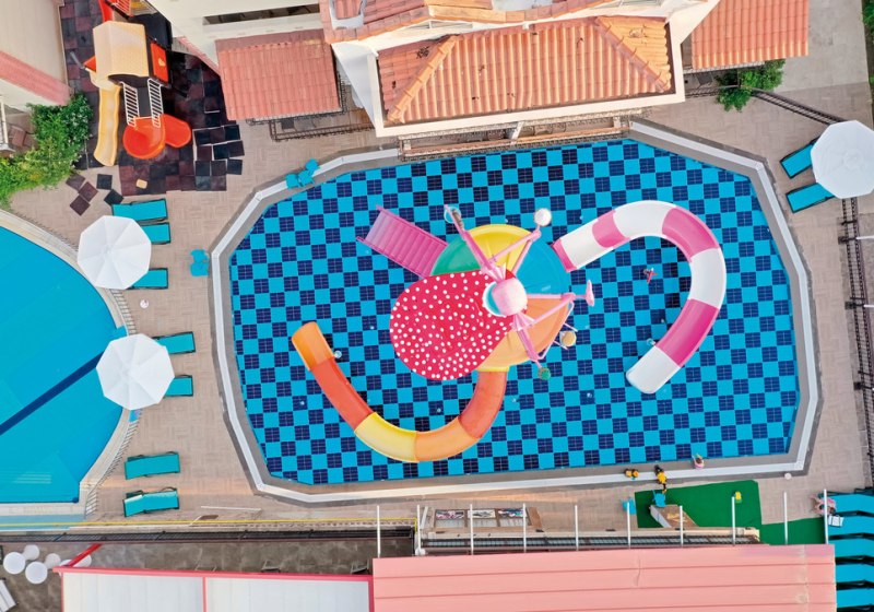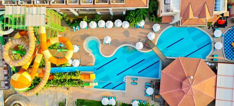 - Rutschenpools: Zwei Außenpools mit Wasserrutschen sorgen für Dynamik.
