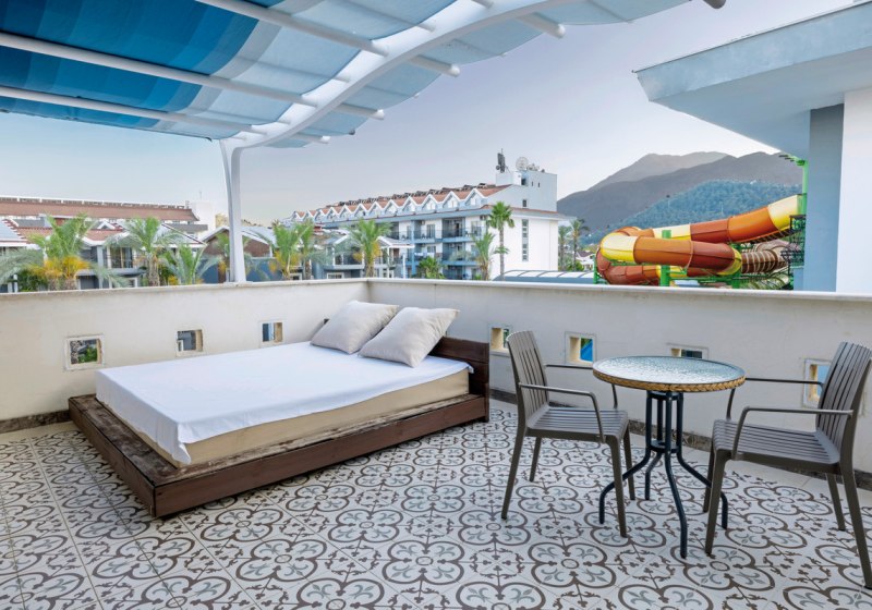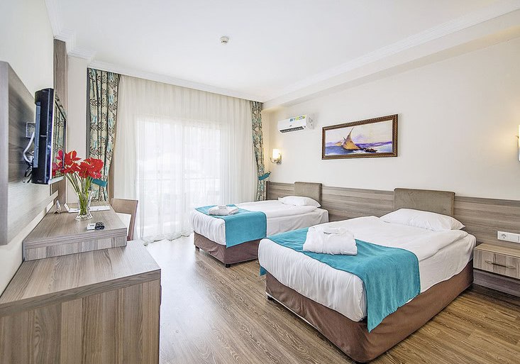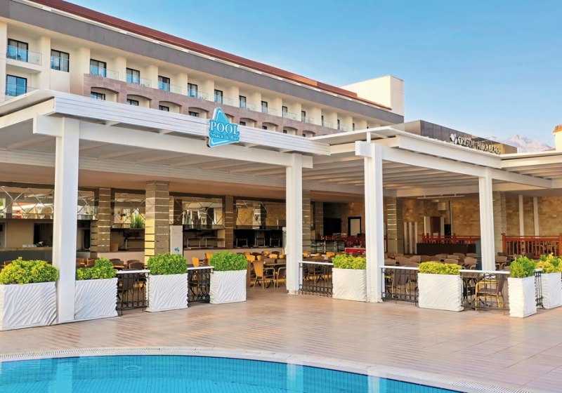 Das Umfeld wirkt lebendig, ohne den Strandfokus zu verlieren. Die Nähe zum Stadtzentrum und die direkte Strandlinie schaffen eine unkomplizierte Kombination aus Baden, Einkaufen und Ausgehen. Mit Strandbar und vielfältiger Hotelinfrastruktur verschiebt Ihr den Aktionsradius kaum – vieles liegt auf kurzem Weg. Für Tagesausflüge dient die Anbindung über die Hauptstraße als pragmatische Basis, während Ihr am Wasser jederzeit zurück in den Ferienmodus schaltet. Highlight: Direkte Strandlage und kurze Distanz ins Zentrum von Kemer.