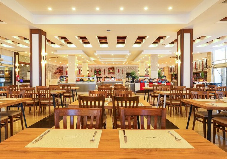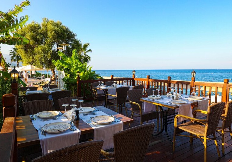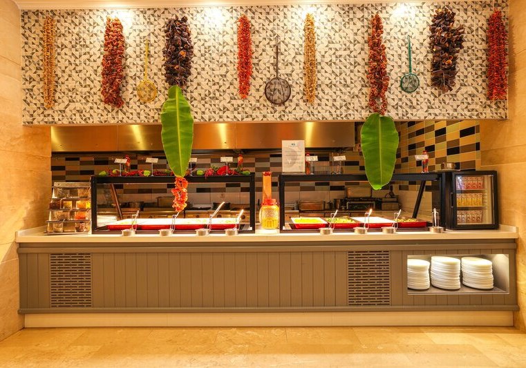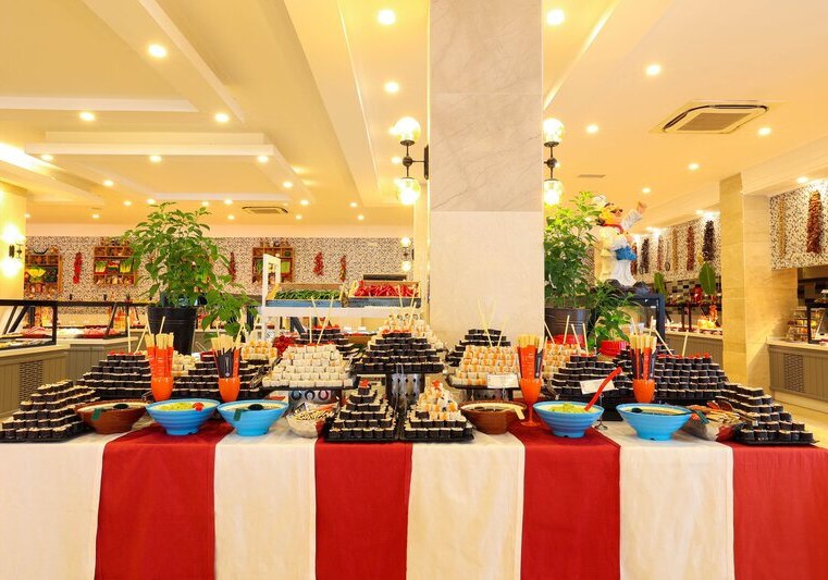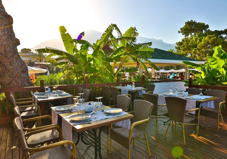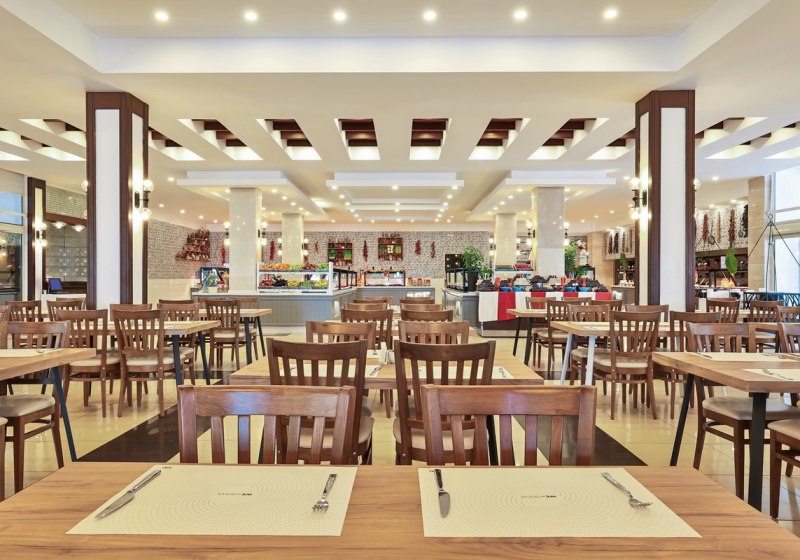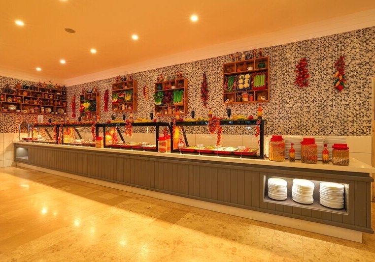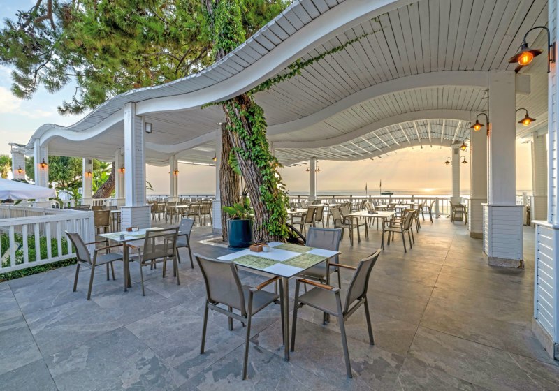 - Hauptrestaurant: Terrasse und reichhaltige Buffets strukturieren den kulinarischen Tag.