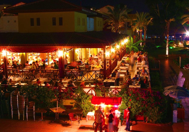 Der Abend gehört der Bühne: Im Amphitheater erwartet Euch ein Unterhaltungsprogramm mit Shows, dazu Live‑Musik an ausgewählten Abenden. Wer den Ausklang gern lebendig gestaltet, wechselt später in die hauseigene Disco. Die Atmosphäre bleibt dabei klar resorttypisch: kurze Wege von der Strandliege zur Show, von der Show an die Bar.