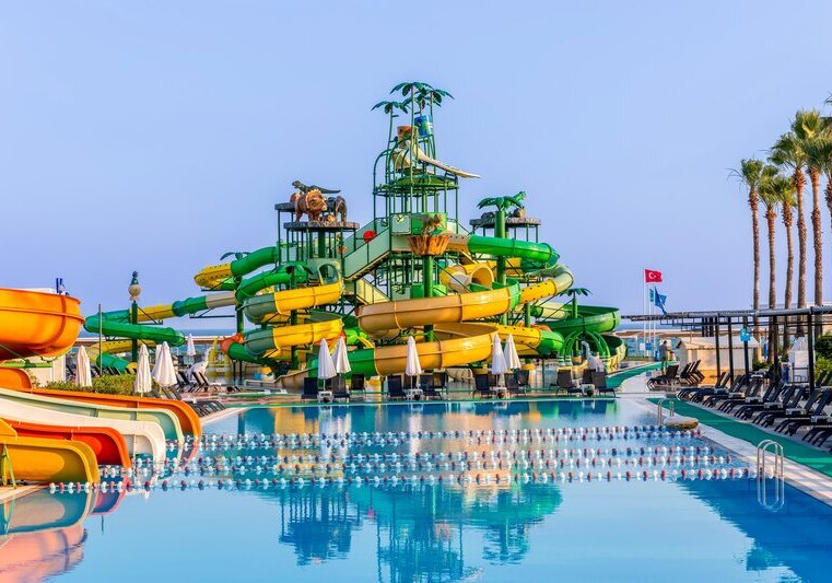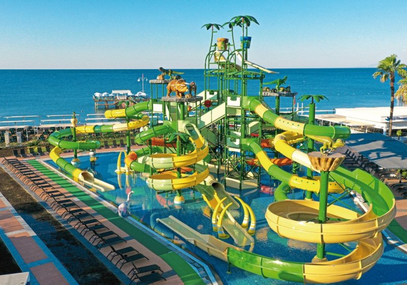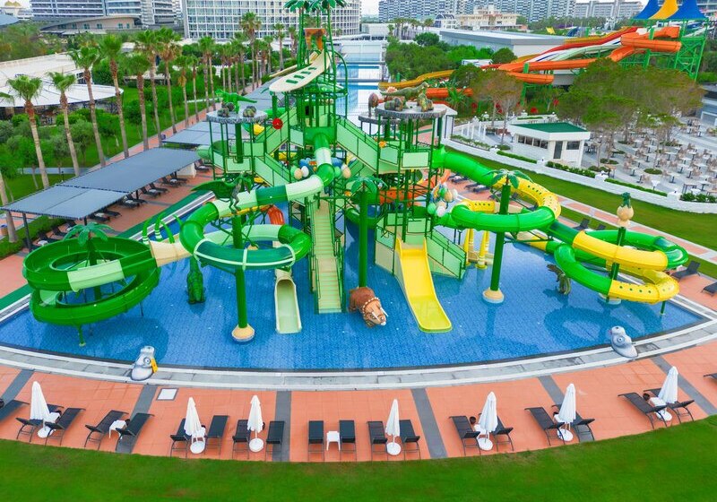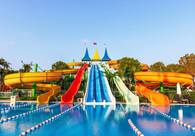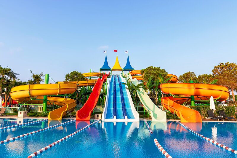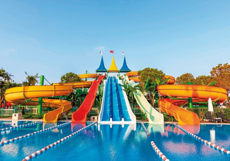 • Liegestühle • Hallenbad • Außenpool • Sonnenschirme • Poolbar • Sonnenterrasse • Wasserrutsche • Wasserpark • Pool • Badetücher