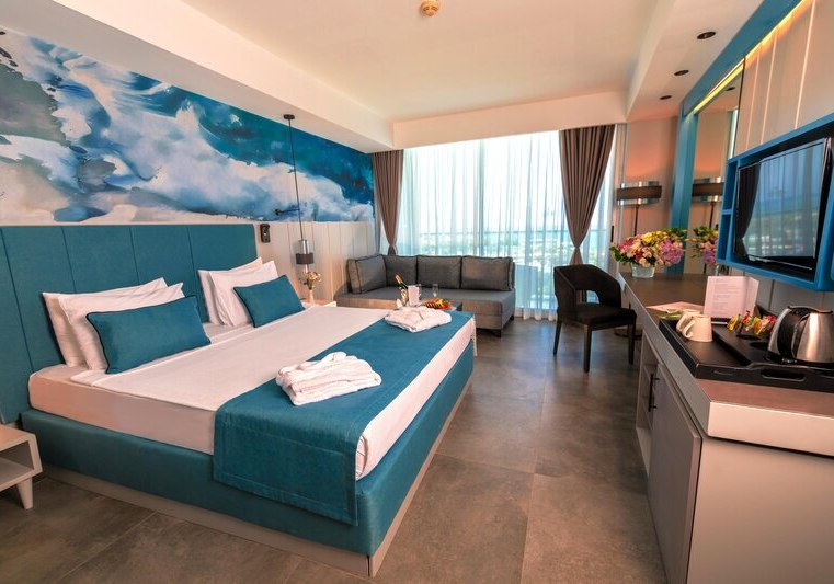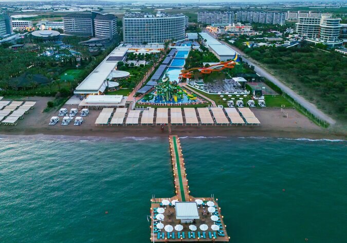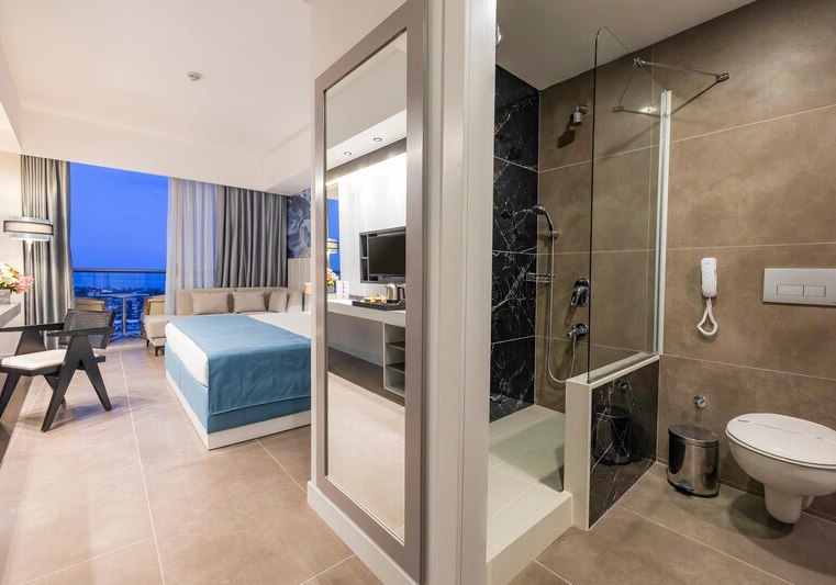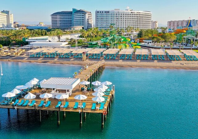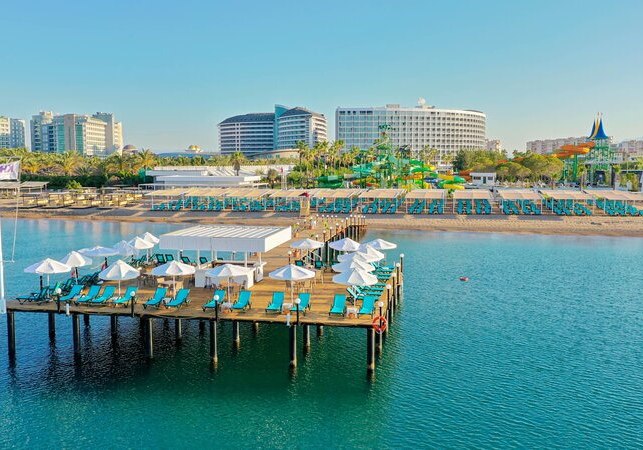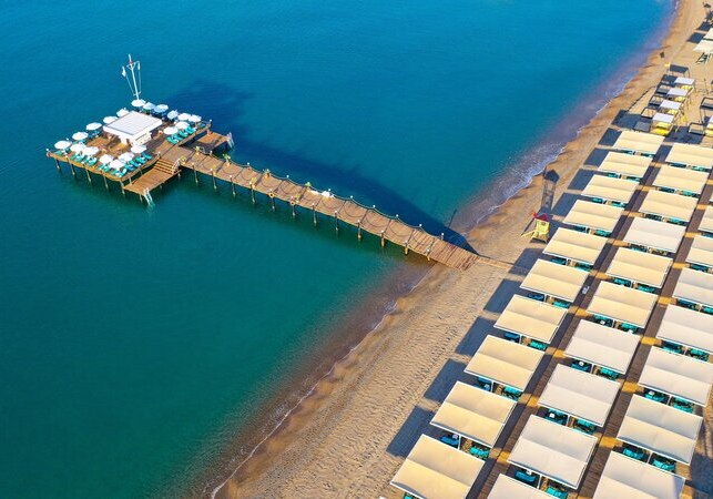 Ihr wohnt in Lara direkt am 137 Meter langen, hoteleigenen Sandstrand – ohne Umwege vom Zimmer an die Küste. Der Flughafen Antalya liegt etwa 12 Kilometer entfernt, die Altstadt von Antalya etwa 25 Kilometer. Am Hotel warten Bushaltestelle und Taxis, sodass Ihr flexibel zwischen Strandtag und Stadtausflug wechselt.