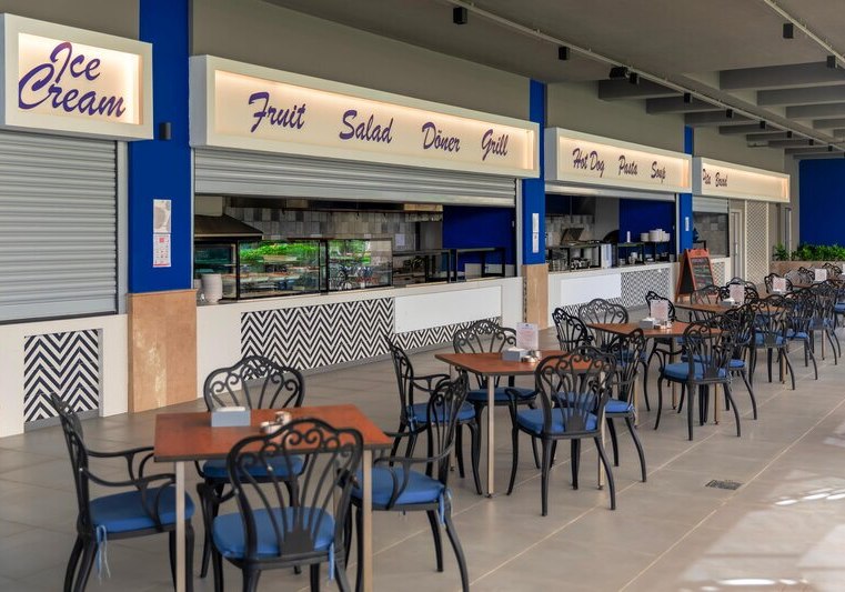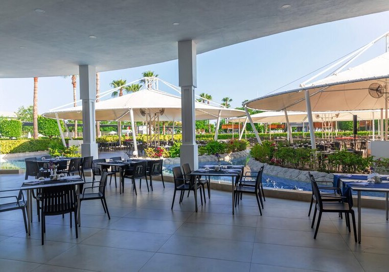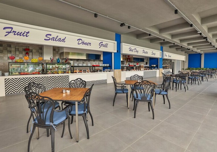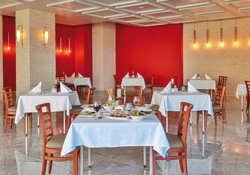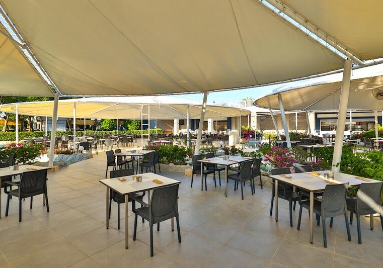 Familien fühlen sich dank Kinderbecken, Spielplatz, Miniclub und Mini-Disco bestens abgeholt, während Aktivreisende im Fitnesscenter und auf Sportflächen auf ihre Kosten kommen. Kulinarisch legt das Haus mit Hauptrestaurant, drei À-la-carte-Optionen, Biergarten und mehreren Snackpoints nach. Abends sorgen Animation und Livemusik für Abwechslung. Highlight: Vielseitiges All-inclusive-Plus-Angebot mit Buffet, À-la-carte und Snackstationen.