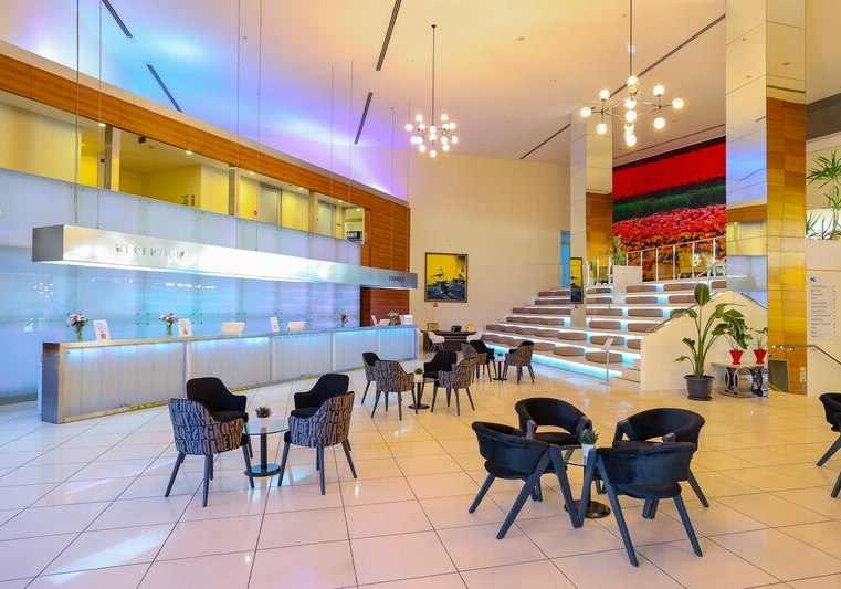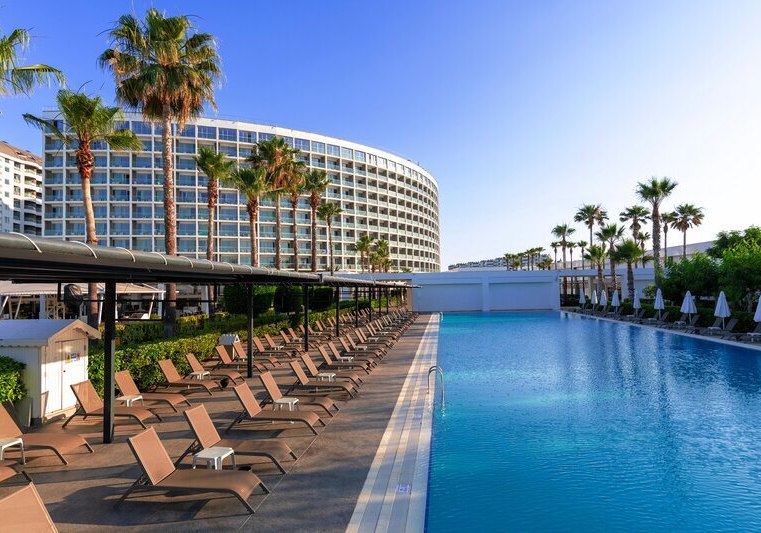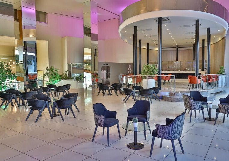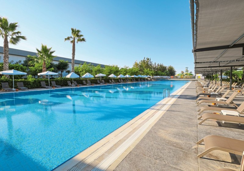 Das Haus bietet 400 Zimmer auf acht Etagen, erschlossen durch Aufzüge. In der Lobby erwarten Euch Rezeption und Sitzbereiche, im gesamten Hotel nutzt Ihr WLAN. Ein Minimarkt, verschiedene Geschäfte, Friseur sowie Bibliothek und Lounge ergänzen die öffentlichen Zonen. Highlight: Weitläufige Pool- und Terrassenlandschaft für strukturierte Tagesplanung.