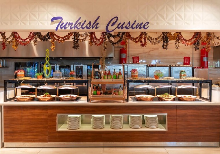 Zwischen Pool- und Beach-Snackbar bleibt der Weg zum Snack kurz, dazu kommen mehrere Bars, Lobbybar sowie eine Patisserie und ein Food Court. Vegetarische Optionen, Kindermenüs, Diät- und Halal-Kost sowie Bio-Angebote sind vorgesehen. Ein Willkommensgetränk rundet die Ankunft ab. Highlight: Durchdachtes Angebot mit Spezialkost und familienfreundlichen Menüs.