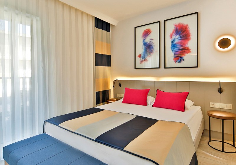 • Klimaanlage • Haartrockner • Minibar (kostenfrei) • Telefon • Safe (kostenfrei) • Meerblick (je nach Zimmerkategorie) • Schlafsofa • Fernseher • rollstuhlgerechte Zimmer (auf Anfrage) • WiFi (kostenfrei) • Balkon oder Terrasse • Gartenblick • Bergblick • Poolblick • Strandblick • Waldblick • Balkon (je nach Zimmerkategorie) • Terrasse
