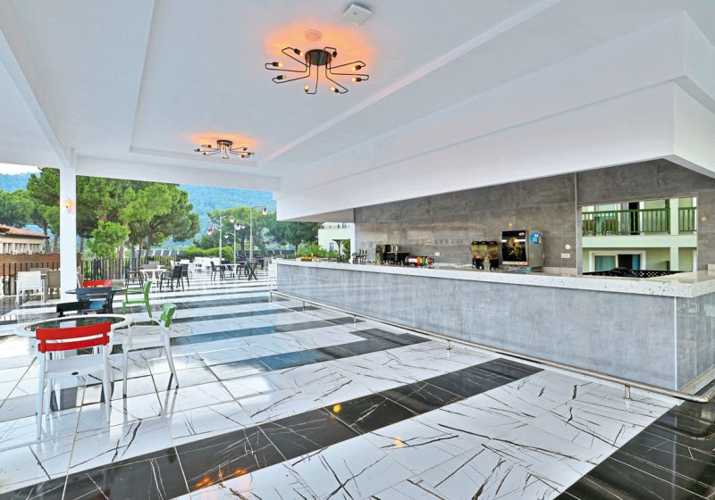 Ihr urlaubt an der Bucht von Beldibi, direkt am steil abfallenden Sand-/Kiesstrand mit Badesteg. Öffentliche Minibusse und Taxis stehen vor dem Hotel bereit. So erreicht Ihr umliegende Orte flexibel. Das Zentrum von Kemer liegt etwa 17 Kilometer entfernt und eröffnet zusätzliche Einkaufs- und Ausgehmöglichkeiten.