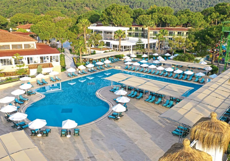 Im Crystal Flora Beach Resort wohnt Ihr in mehreren dreistöckigen Bungalowgebäuden, eingebettet an der Bucht von Beldibi. Der steil abfallende Sand-/Kiesstrand mit Badesteg liegt direkt vor Euch. Weitläufige Poolzonen mit Süßwasserpool, Kinderbecken und ein Aquapark mit sieben Rutschen prägen das lebendige Resort-Flair. Familien, Aktivfans und Strandliebhaber finden hier reichlich Abwechslung.