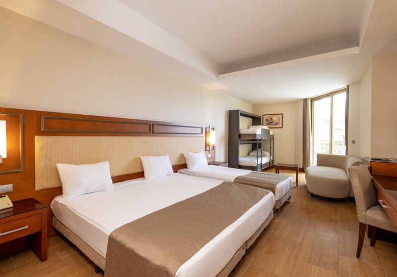 Für Familien stehen Varianten mit separaten Schlafzimmern bereit, teils auf zwei Etagen. Familienzimmer Typ A bietet zwei getrennte Schlafräume mit individueller Klimaanlage je Raum. Für Reisen mit Kindern gibt es Doppelzimmer mit Etagenbett sowie Babybetten auf Anfrage. So findet Ihr die passende Größe und Struktur für Eure Bedürfnisse.