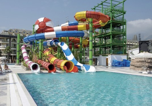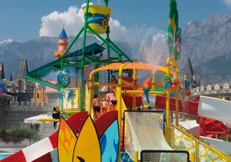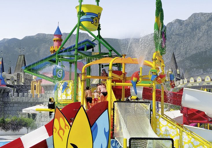- Wasseraktion: Rutschenpools in der Anlage und motorisierte Optionen am Strand.