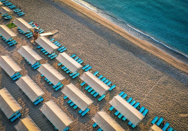 - Strandkomfort: Liegen, Schirme und Badetücher am Strand inklusive.