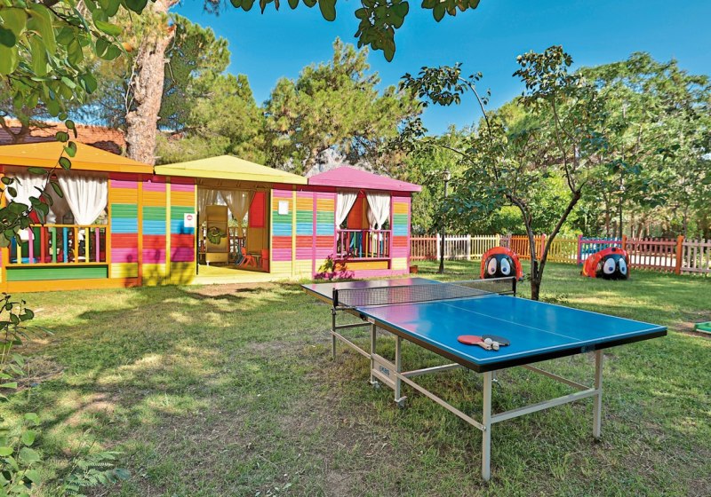 Aktive starten im Fitnessraum oder auf dem Tennishartplatz. Aerobic, Tischtennis, Boccia, Darts, Basketball und Beachvolleyball bringen Struktur in den Tag. Zwei Rutschenpools und ein separates Kinderbecken sorgen für Wasserspaß in der Anlage. Bowling und Billard sind gegen Gebühr verfügbar.