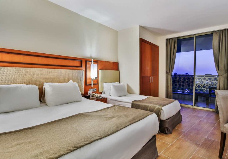 Die Anlage umfasst 589 Zimmer in mehreren dreistöckigen Blöcken. In der Lobby mit Rezeption und Sitzgruppen startet Ihr in den Tag, während WLAN im Hotelbereich inklusive ist. Konferenzräume, Sat-TV-Raum und Loungebereiche strukturieren die Innenräume. Draußen warten große Poolzonen mit Süßwasser- und halbolympischem Becken sowie separatem Kinderbecken.