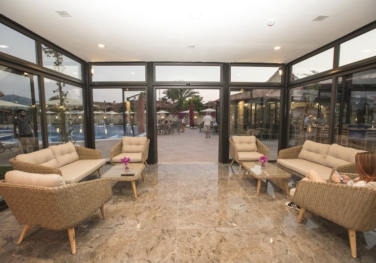 Im Dalyan Live Hotel verbindet Ihr das ruhige Tempo von Dalyan mit einer klar strukturierten Hotelwelt. Der kompakte Charakter mit 56 Zimmern schafft Übersicht, kurze Wege und ein entspanntes Miteinander. Der Garten mit Außenterrassen, Sonnenliegen und Schirmen rahmt den Poolbereich mit separatem Kinderbecken. Drinnen erwartet Euch eine unaufgeregte Lobby mit 24h-Rezeption sowie Bereiche zum Zurückziehen wie Bibliothek und TV-Raum.