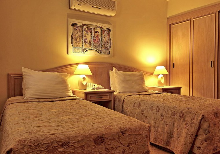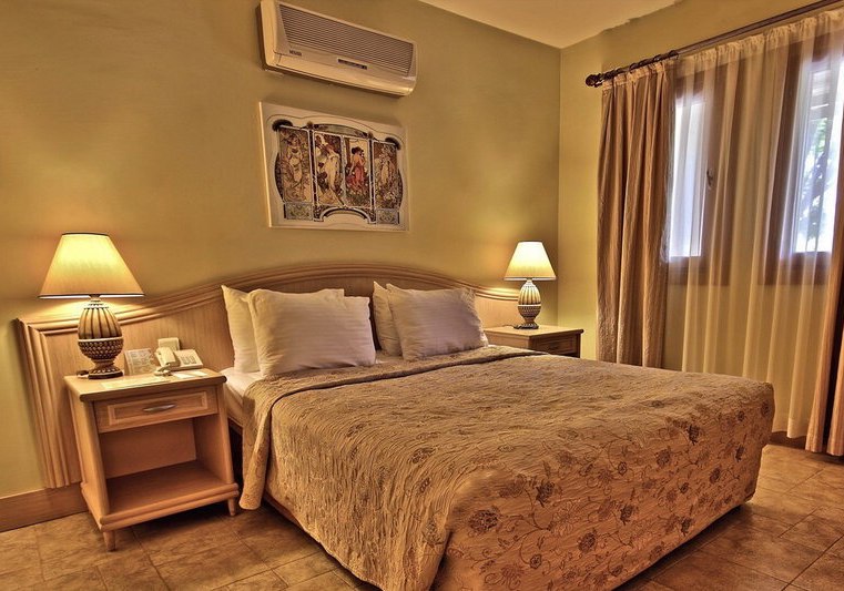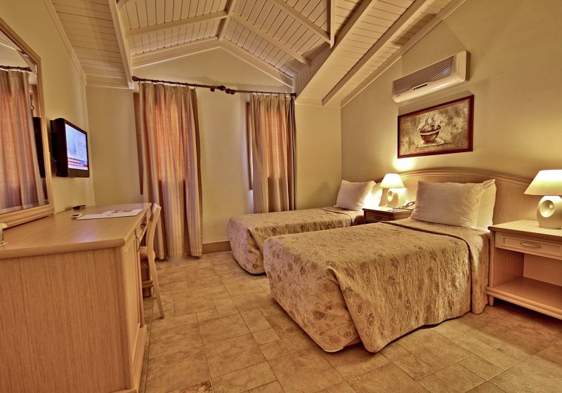 Die Doppelzimmer liegen im Erdgeschoss und bieten Balkon, Dusche/WC, Föhn, individuell regulierbare Klimaanlage, TV mit Musikkanal, Mini-Kühlschrank, WLAN, Safe, Direktwahl-Telefon sowie Fliesenboden. Familienzimmer im ersten Stock verfügen über zwei durch eine Tür getrennte Schlafräume und eine Hydromassage-Dusche/WC; sie kommen ohne Balkon oder Terrasse aus – dafür mit klarer Raumaufteilung.