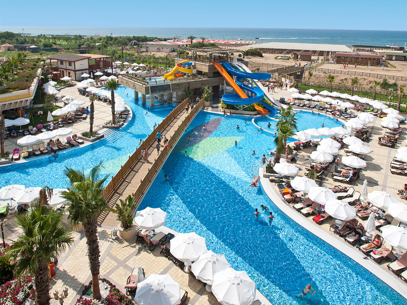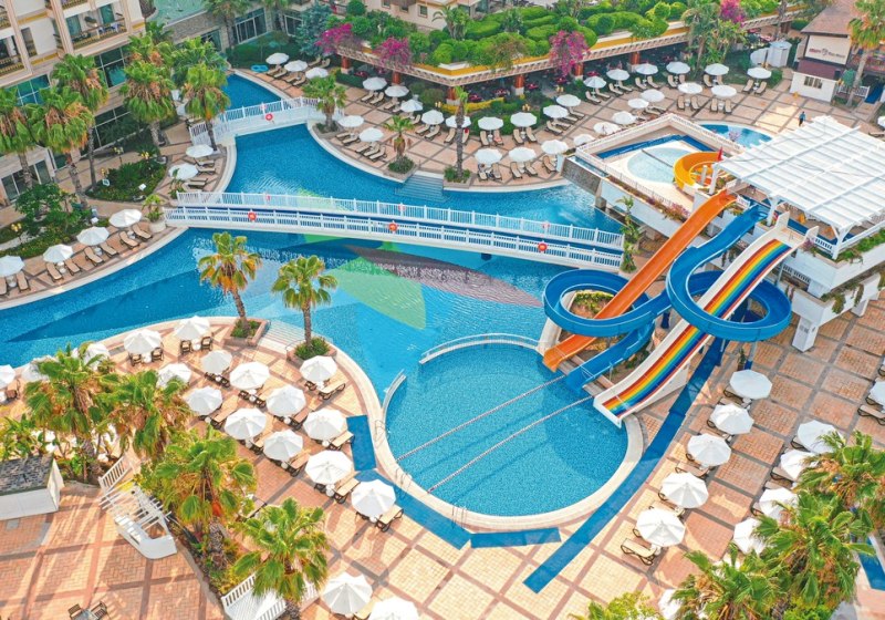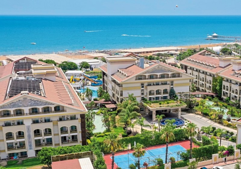 Diamond Excellence Resort & Spa empfängt Euch direkt am Sandstrand der Ferienregion Colakli und verbindet weitläufige Dimensionen mit klarer Struktur. Zwischen Gartenwegen, Sonnenterrassen und einer großzügigen Außenpool-Landschaft mit Wasserrutschen findet Ihr genau den Mix aus Aktivität und Müßiggang. Highlight: Direkte Strandlage mit weitläufiger Poolzone für entspannte Tage am Wasser.