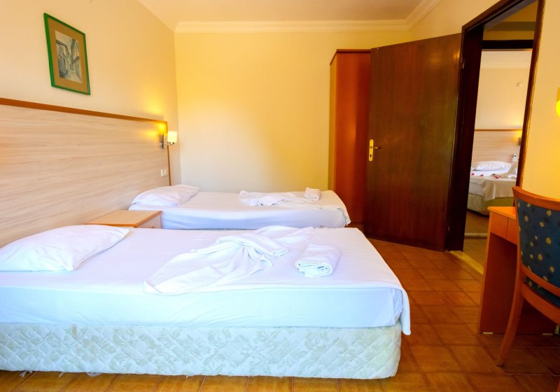 Für Familien punkten Familienzimmer mit Verbindungstür und kostenfreie Babybetten auf Anfrage. Wer es ruhig mag, bleibt am Pooldeck; wer aktiv sein will, nutzt Strandspiele, Fitness und Wassersport. Minibusse vor der Tür und die kurze Distanz zur Ortschaft runden Euren Aufenthalt in den Ferien praktisch ab.