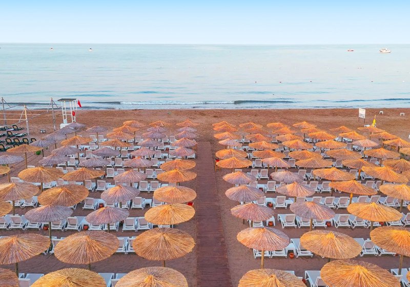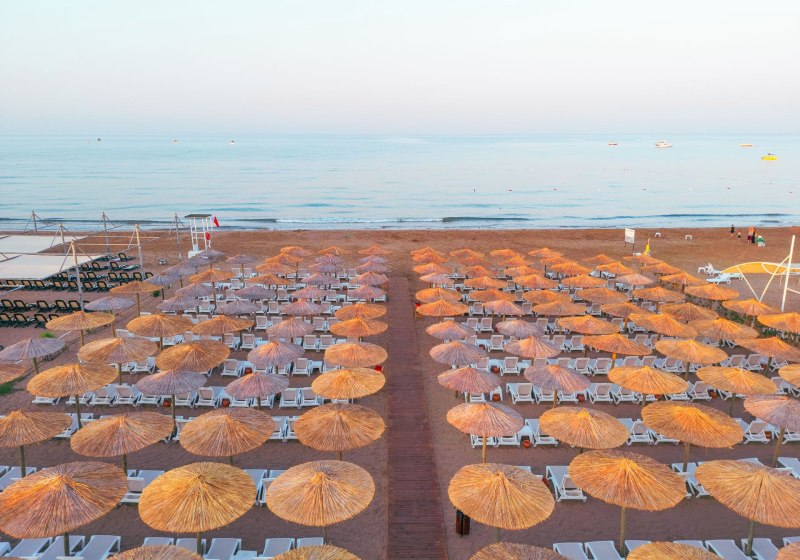 In Side‑Kumköy wohnt Ihr nahe Einkaufs‑ und Unterhaltungsmöglichkeiten, mit Minibus‑ und Taxistand in Hotelnähe. Der private Sandstrand liegt etwa 1,7 Kilometer entfernt und wird bequem per Strandshuttle erreicht. Vor Ort erwartet Euch eine Strandkulisse mit Liegen, Sonnenschirmen und Badetüchern – praktisch organisiert und gut angebunden.