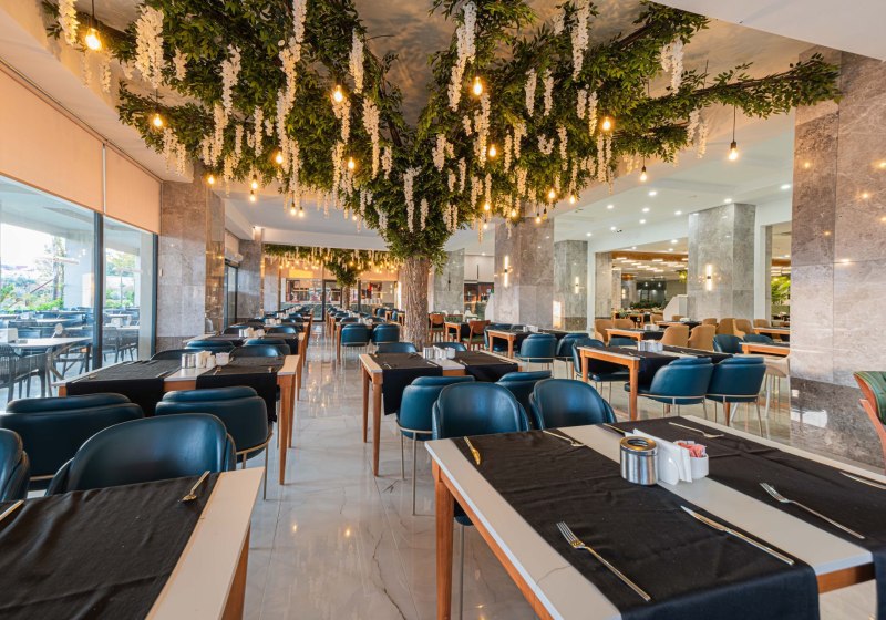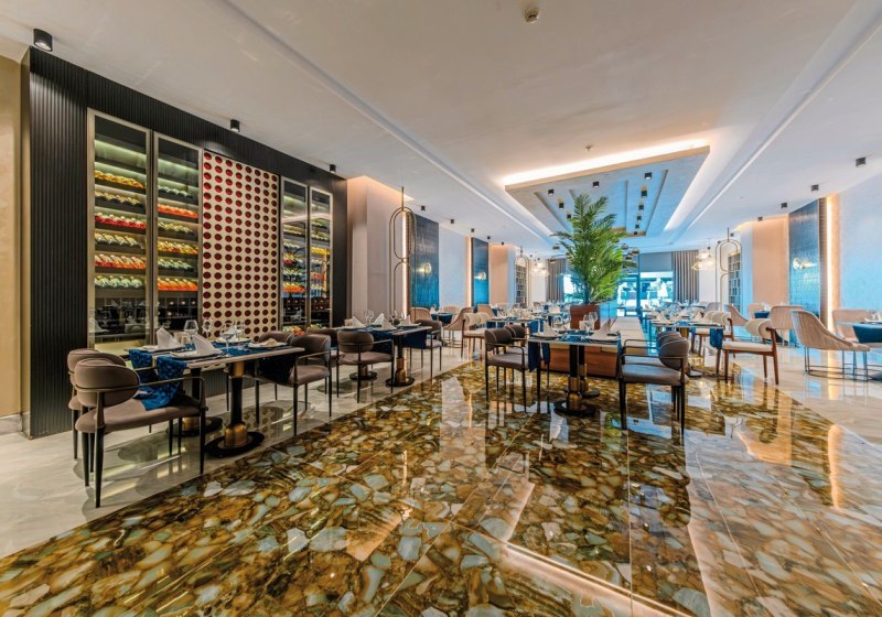 Das kulinarische Angebot stützt sich auf All‑Inclusive mit Frühstück, Mittag‑ und Abendessen, Snacks sowie alkoholischen und alkoholfreien Getränken. Mittelpunkt ist das Hauptrestaurant mit Terrasse; mehrere À‑la‑carte‑Restaurants setzen zusätzliche Akzente ohne starre Routinen, ergänzt durch Kindermenüs.